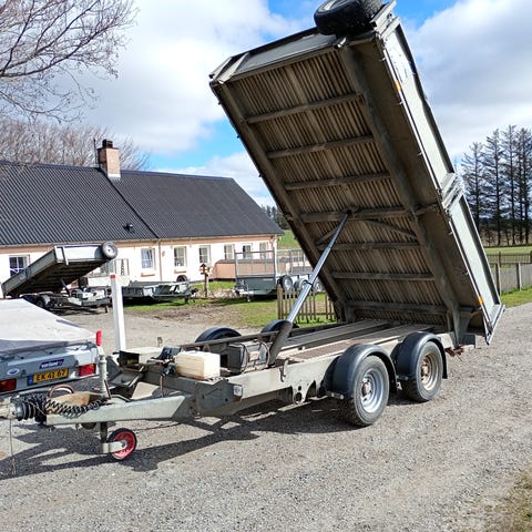 Variant 2002 M, ladmål 300x172 cm, med tip og høj bagklap, totalvægt 2000 kg. Last 1450 kg., nysynet med nye dæk og fælge, nye bremser og ny gasdæmper i trækket, fin trailer klar til omregistrering.
