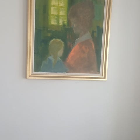 Olimaleri af Thomas Tråsdahl i flot guldramme.