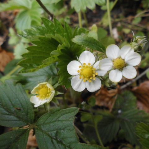 Skovjordbær Bunddække. Planten har grønne blade og røde bær. Velegnet til dyrkning i have, bed eller krukke på altan eller terrasse. Planten bærer små søde spiselige skovjordbær og har hvide blomster i sæsonen. Pris pr plante