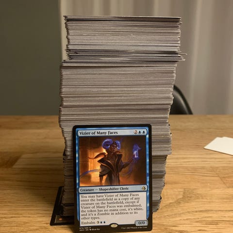 Samling af Magic: The Gathering samlekort opbevaret i plastlommer i en mappe. Kortene er organiseret i sider med ni kort pr. side og der er ca 400kort i mappen og alle sammen er foils og der er dog ingen rares eller mystics kun common og uncommon og heller ej nogen kort over 1 euro. Kortene sælges samlet den kan også sendes eller hentes i Højby Hvidovre eller i Tårnby efter aftale og de kan også godt leveres i kbh eller omg for 50-100 kr mvh Michael