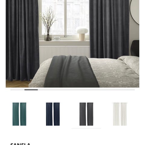 1sæt Velour SANELA gardiner fra IKEA sælges - Kun let falmet på den ene side – kan nemt vendes eller tilpasses/afkortes af en handy person. Ellers i fin stand. De sidste to billeder viser falmet.