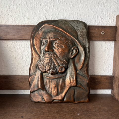 Retro bronze fisker relief i flot stand H22cm uden snor og H29cm med snor x B16cm mp 400kr afhentes i 8570 Trustrup eller sendes for 45kr