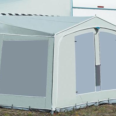 Fortelt anneks til campingvogn i beige/sand farve. Annekset monteres på eksisterende fortelt og giver ekstra overdækket plads ved siden af campingvognen. Velegnet som opbevaringsrum eller ekstra opholds- og soveplads ved camping.