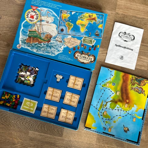 Fuldrigger brætspil. Spillet er for 2-4 deltagere og går ud på at handle med varer, købe skibe og fæstninger samt tjene penge i form af dukater. Spillerne flytter rundt på spillepladen ved hjælp af terninger, køber og sælger varer og udvikler deres formue. Spillet indeholder spilleplade med verdenskort, papbrikker, pengesedler i dukater samt spilleregler på dansk.