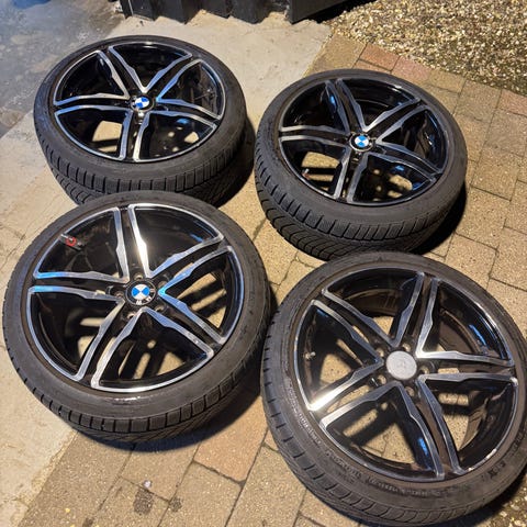 En super flot sæt fælge Orginal BORBET 18” 5x120 brugt men Som Ny INGEN HAKKER på dem , med Borbet Centerkapsler , monteret med 4 stk. Goodyear Sommerdæk stadig mønster til en sommer , har været monteret på en BMW 5 serie F10 men passer også på andre biler , hvis du vil være næste ejer af de her fede fælge så kan du henter dem på Djursland