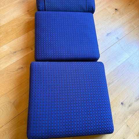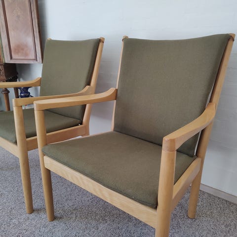 Getama Wegner lænestole. Træet skal måske lige have noget sæbevand men stoffet er i rigtig god stand. Hurtig afhentning prioriteres