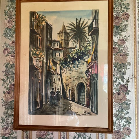 Ukendt fransk kunstner akvarelmaleri
