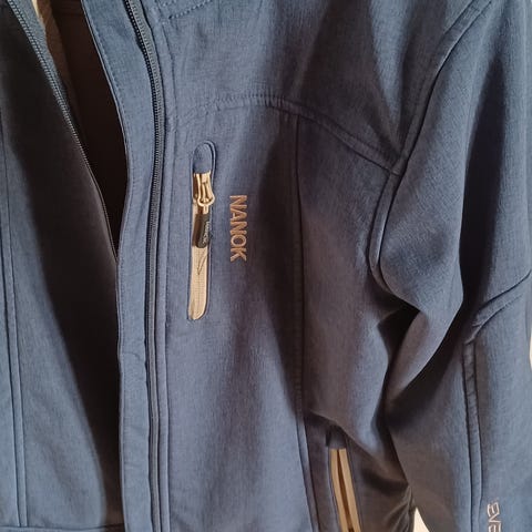 Super overgangsjakke i høj kvalitet fra Kabooki. Lavet i tyndt let og åndbart materiale. Den er meget vind og vandafvisende. Har brugsspor som ses på billeder; snavs som ikke går af i vask ved håndled og på forlomme - dette ses ikke i brug. Fra røgfrit hjem og vasket uden parfume.