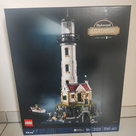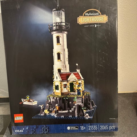 Fyrtårn med redningscenter 41380 der er lys i fyrtårnet den er som ny, komplet med alle klodser dog mangler der et lille stof skattekort sættet er med original kasse og samlevejledning.