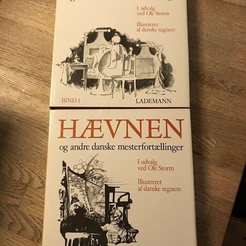 Hævnen og andre danske mesterfortællinger, Udvalg ved Ole Storm, genre: noveller, Hardcover med smudscover. Røgrit hjem.