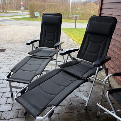 2 stk Thor Isabella campingstol i grå tekstil med polstret sæde og ryg lav. Stolen har justerbar ryglæn og faste armlæn i plast. Stel i metal med skridsikre fødder. Velegnet til brug ved campingvogn, fortelt eller terrasse, hvor der ønskes en sammenklappelig og komfortabel siddeplads.