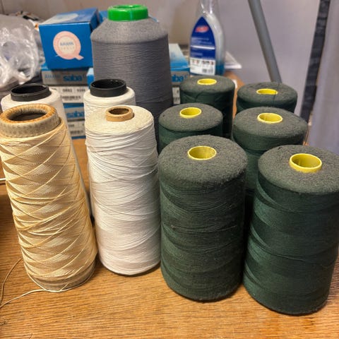Tyndt Sytråd på spoler i blandede farver. Flere nuancer, egnet til bukser oplægning