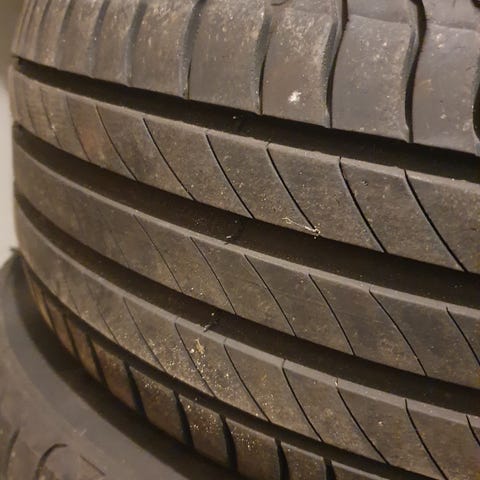 Dæk brugt med omkring 6mm slidbane tilbage.