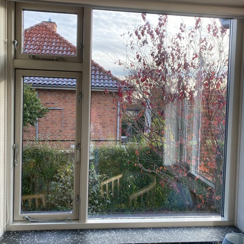 Vindues ramme mål 59x59 cm, thermo, et med matteret glas til badeværelse