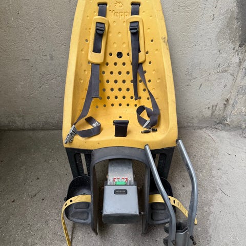 En rigtig lækker cykelstol uden skrammer eller stort slid. Der er lidt rust på selve monterdelen til cyklen, men fejler ellers intet.