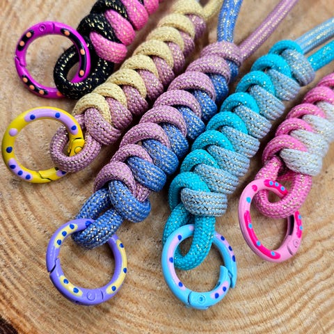 Knyttesnoren kan bruges til mange formål såsom nøgleringe, armbånd, taskepynt, makrame, hundeseler m.m.