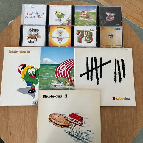 Shu-bi-dua LP plader samling. Flere albums fra bandet Shu-bi-dua, som vist på billedet. Velegnet til samlere eller til dem, der ønsker at udvide deres samling af danske rock/pop vinylplader. LP’erne er standard 12" vinylplader. Eventuelle detaljer om årgange, udgaver og stand kan oplyses.