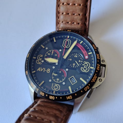 Flot mekanisk optrukket Poljot Mig 29 chronograpf 3133 fra start 90’erne. 40mm uden krone. Fungerer, nulstiller perfekt og holder tiden flot. Original noget slidt læderrem.