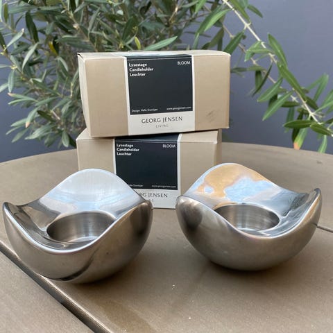 Smukke og elegante fyrfadsstager fra Georg Jensen i det ikoniske Bloom-design 🌿