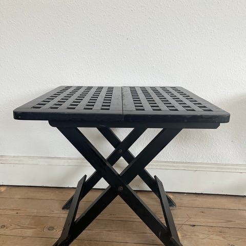 Klapsammen bord / sofabord / sidebord i træ, det er 51 cm højt og 49,5 x 49,5 cm.