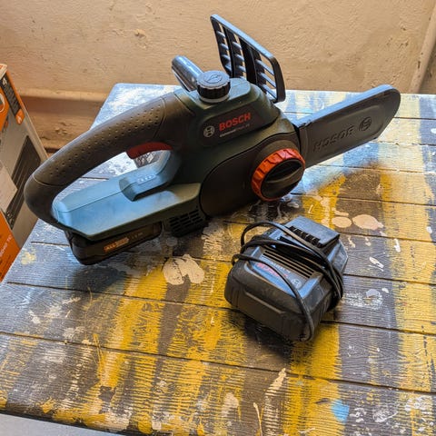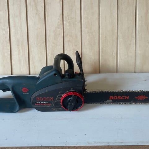 En hånds kædesav batteridrevet.