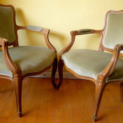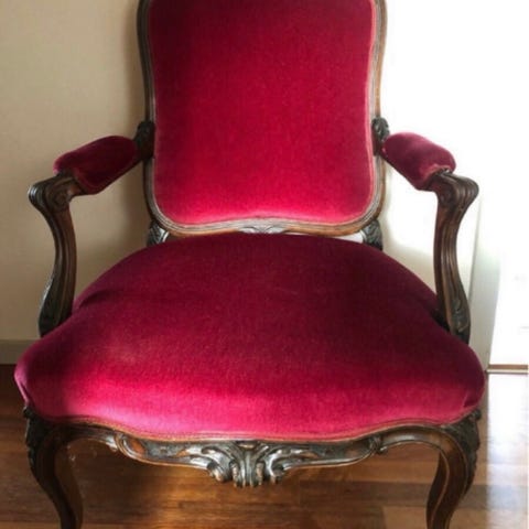 Antik krongestol i klassisk stil – nybetrukket velour