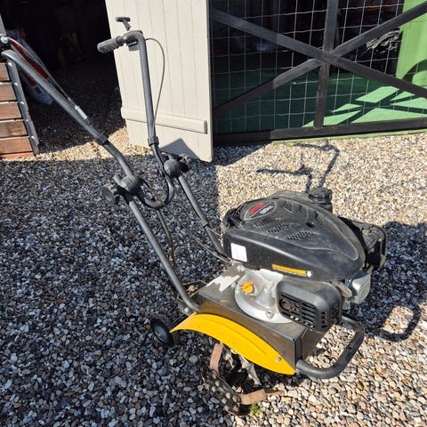 Har en elektrisk havefræser som jeg ikke skal bruge mere. Den virker, og skal bare have en ny skrue til håndtaget.