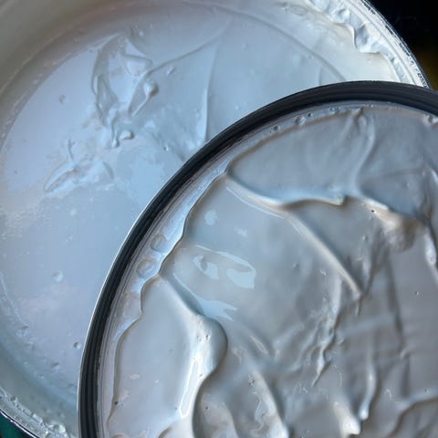 med denne maling behøver man ikke kante mellem loft og væg, hurtig at male med høj dækkeevne,.