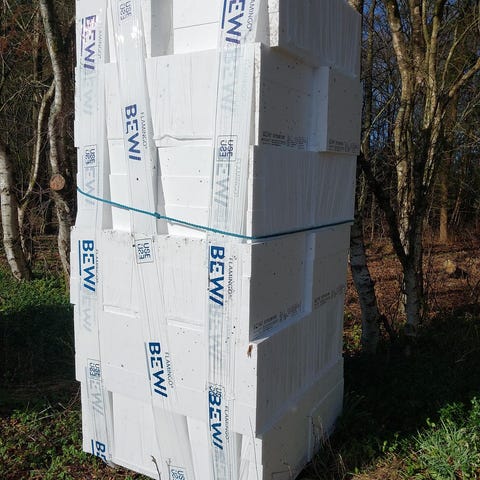 Tårnet består af: 14 plader á 200 x 1200 x 1200 mm (20m2) BEWI EPS 80 gulvflamingo