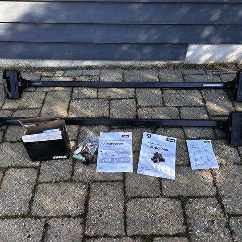 Thule Rapid System 753 tagbøjler i sølvfarvet aluminium med sorte plastfødder. Sættet består af to tværstænger med tilhørende fødder til montering på bilens tag. Tagbøjlerne er kompatible med Thule Rapid System 753, som er beregnet til biler med faste monteringspunkter. Velegnet som base til montering af tagbokse, cykelholdere eller andet tagmonteret udstyr. Instruktionshæfte til både tagbøjler og Rapid System 753 medfølger efter billederne.