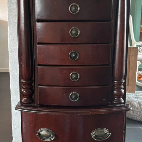 Skænken fremstår generelt pæn og velholdt, men der kan forekomme små brugsspor, da det er et ældre møbel.