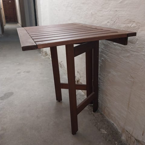 Et bord med plads til 8-10 personer omkring (når det er foldet ud)