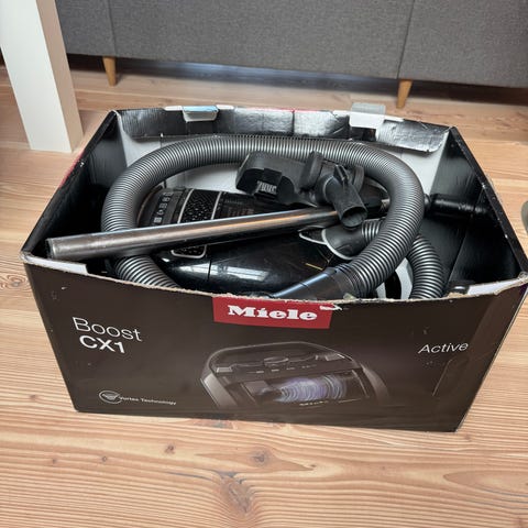 Der følger en stor uåbnet pakke med 8 støvsugerposer samt 4 filtre.