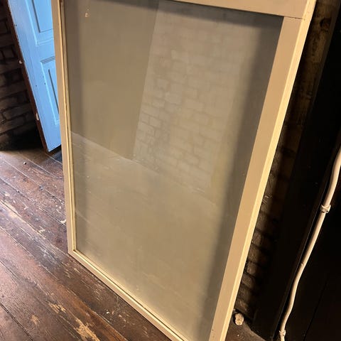 Rammen er af træ med gulddetalje og glas.