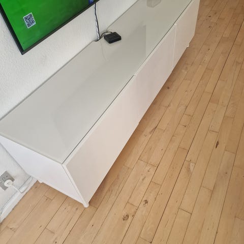 Flot og moderne TV-bord sælges. Består af 4 moduler som er sat sammen, men kan nemt adskilles hvis man ønsker et mindre TV-bord eller anden opstilling.