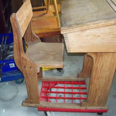 Skolepult, Til hjemmehygge eller til butik sælges denne sjældne og gamle dobbelte skolepult fra Vemmetofte klosters skole. Særdeles velholdt og i fin stand.