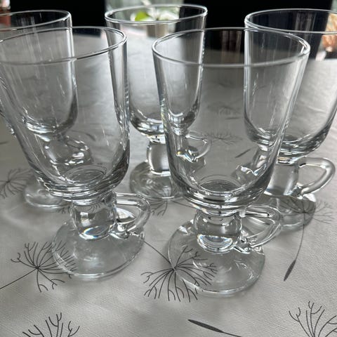 4 stk irish Coffee glas, med 4 sugerørs skeer og 4 rustfri stål brikker til at stille glassene på.. 40 kr