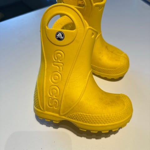 Gule gummistøvler fra Crocs. Størrelsen er en amerikansk/engelsk, hvilket svarer til ca. størrelse 24. Se billeder af stand.
