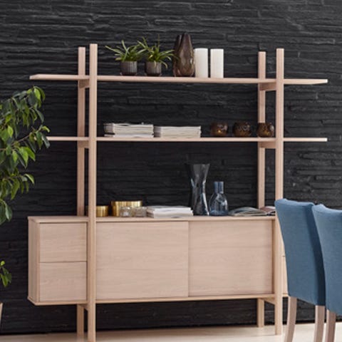 2 stk flotte reoler model Byron Bay. Købt hos BoShop i Århus. Flotte træ låger og åbne rum med glashylder. Der er indbygget LED spots og metalfødder. Super kvalitet og meget velholdte. Nypris kr 15.000
