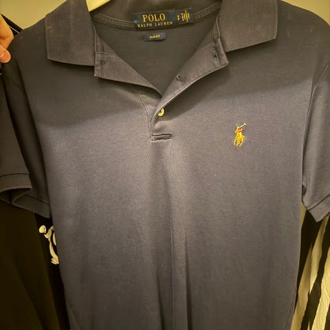 Ralph Lauren Polo Custom Slim Fit Big Pony herrepoloshirt blå bomuld str. L