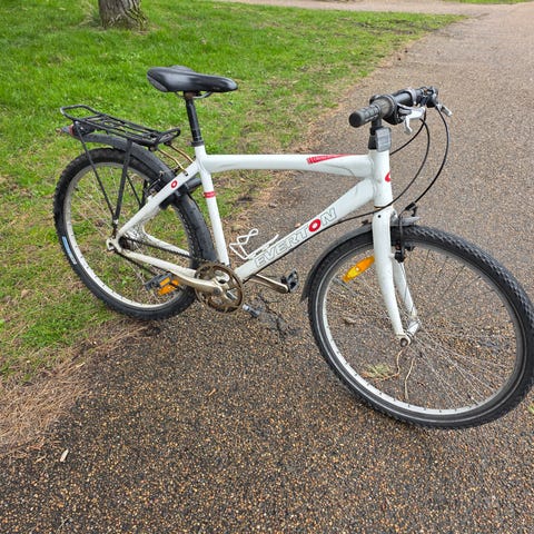 Højde fra jorden til overside saddel I nederste position er 82 cm. For- og baglygte. Brugt, men I fin stand. Cyklen er køreklar