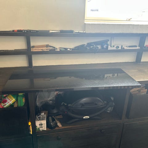 Granit bordplade i gråmeleret stenlook. Velegnet som køkken- eller badeværelsesbordplade, arbejdsbord eller anden fast overflade. Overfladen fremstår med poleret top og rå/ubrugt underside.