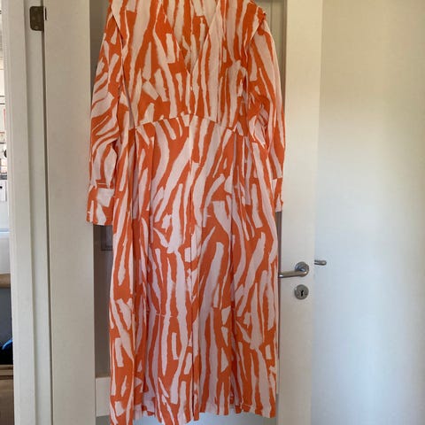 YAS sommerkjole i orange med blomstret mønster. Kjolen er i polyester og kommer i one size. Modellen har lange ærmer og et løstsiddende snit, som egner sig til hverdagsbrug eller lette sommeranledninger. Stoffet har en let struktur, som giver et levende udtryk i materialet.