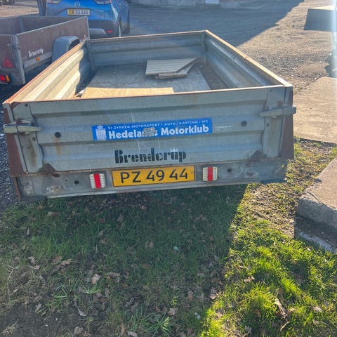 Brenderup trailer i galvaniseret metal. Traileren har enkel aksel og standard anhængertræk med 7-polet stik til tilslutning af lys. Egenvægt, totalvægt og ladmål fremgår typisk af typeskiltet på traileren. Velegnet til transport af mindre gods, haveaffald eller lignende opgaver efter personbil, hvor bilen er godkendt til at trække trailer med pågældende vægt. Skal have bundplade for syn men virker fint for mig til genbrug mv - har været familiens siden ny -er lappet og klar til brug