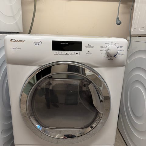 Candy GrandÓ kondens tørretumbler i hvid. Modellen har frontbetjening med drejeknap og display samt flere tørreprogrammer, herunder tidsstyrede programmer, jeans, skjorter, mix & dry, strygetørt og skabstørt. Maskinen har kondenssystem med vandbeholder foran og stor rund låge for nem ind- og udtagning af tøj. Velegnet til almindelig husholdningsbrug.