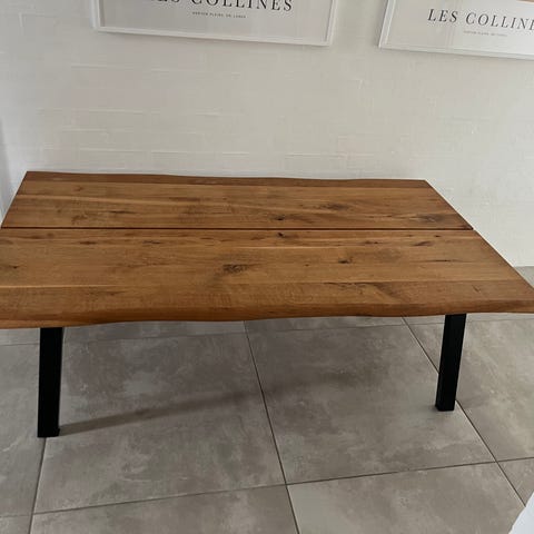 Bordplade: Massiv eg [indsæt farve, f.eks. hvidolieret eller natur] med smukke, gennemgående planker og naturlig struktur i træet.