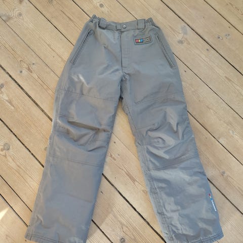 Motorcykelbukser med aftagelige seler og inderfoer. De har en lynlås, som kan gøre bukserne lidt længere i takt med at brugeren vokser i højden.