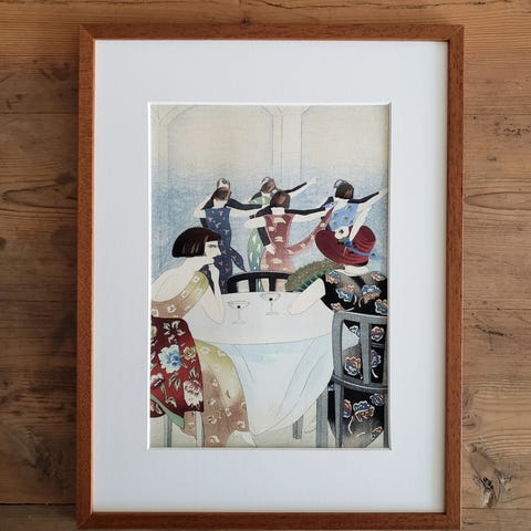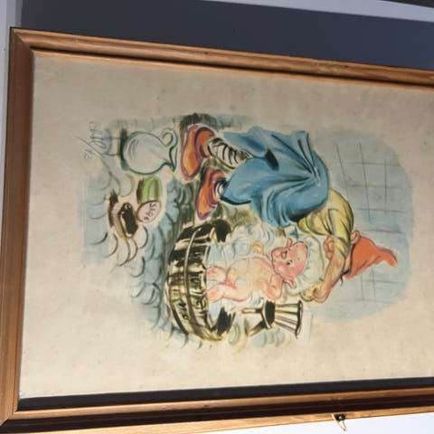 Herligt lille billede/ tryk i ramme - motiv med Aber af Lawson Wood - Vintage Cartoon / tegneserie. Måler 9 x 13 cm.