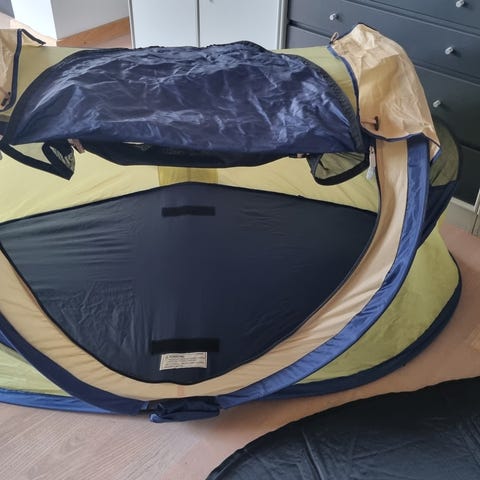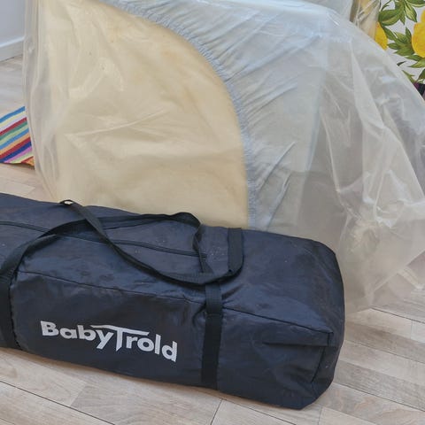 Næsten som ny Deryan weekendseng med oppustelig underlag, sovepose og taske.