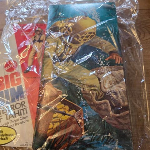Big Jim - Captain Laser, en plastfigur fra Tyskland, i god brugt stand med mindre tegn på alder og pletter, højde 30 cm, bredde 10 cm, dybde 5 cm, vægt 1000 g, blå, afbildning af tegneserier og cartoons, dateret ca. 1960–1970. Klik på den blå "gå til varen" knap, for at købe eller byde på denne vare. Den samlede pris vil blive vist inden du afgiver dit bud.